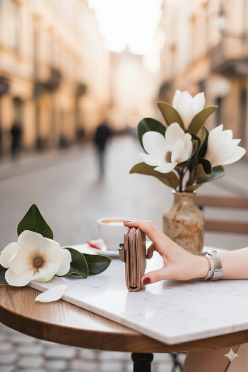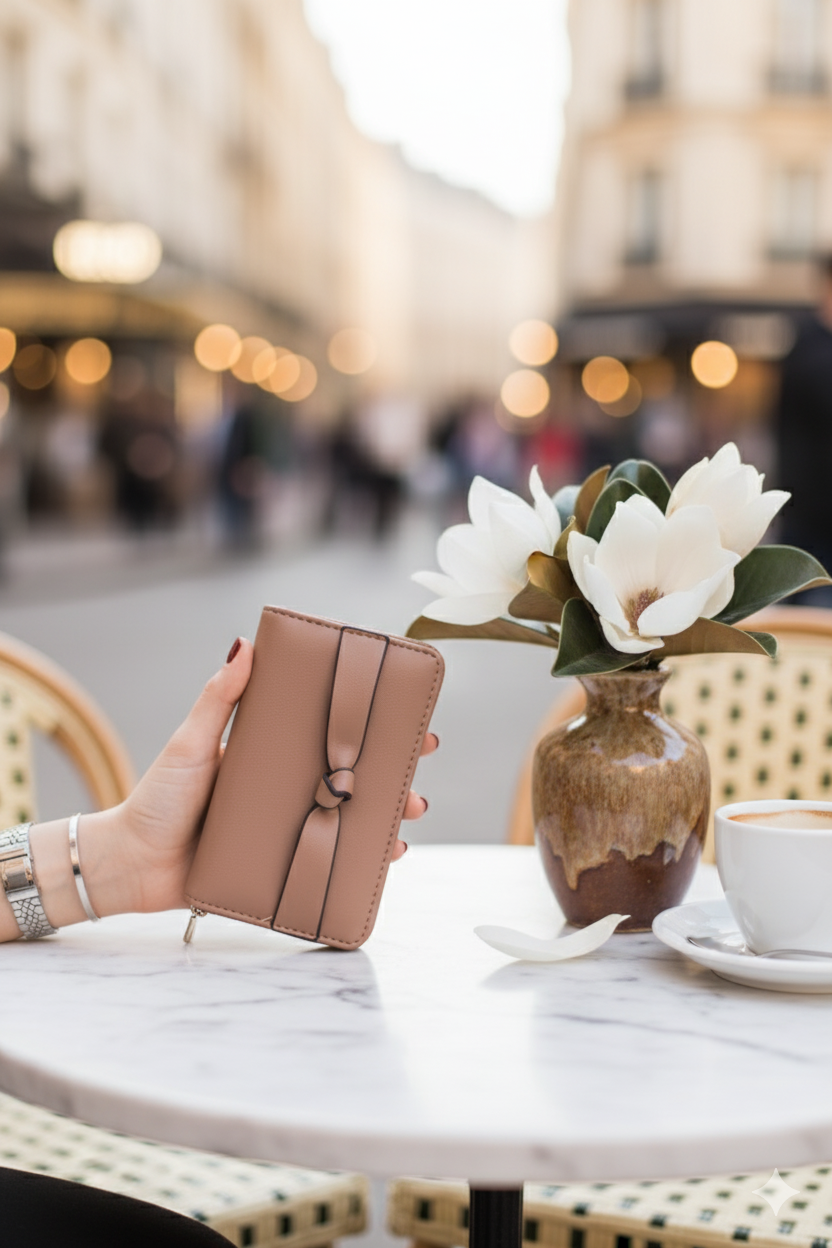 A carteira nude com laço é pura delicadeza. Compacta e charmosa, combina com qualquer bolsa e ocasião. Ideal para mulheres que valorizam um visual feminino e sofisticado.